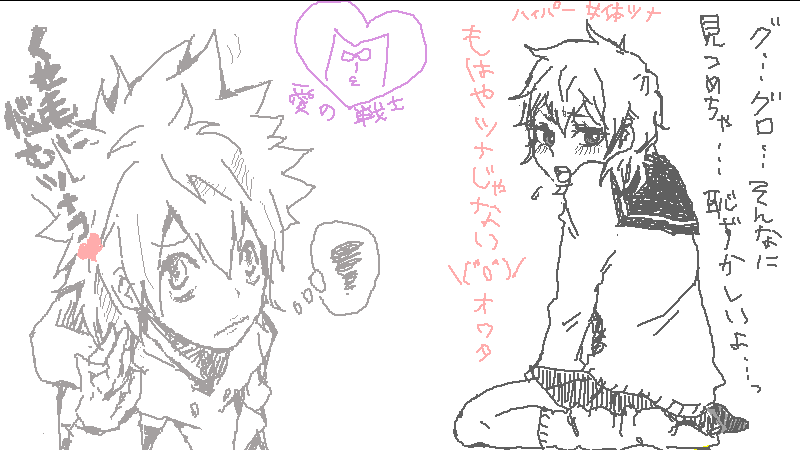 私の描いたツナ子ちゃんはハイパー状態です。ハイパーになるとツンデレになる設定